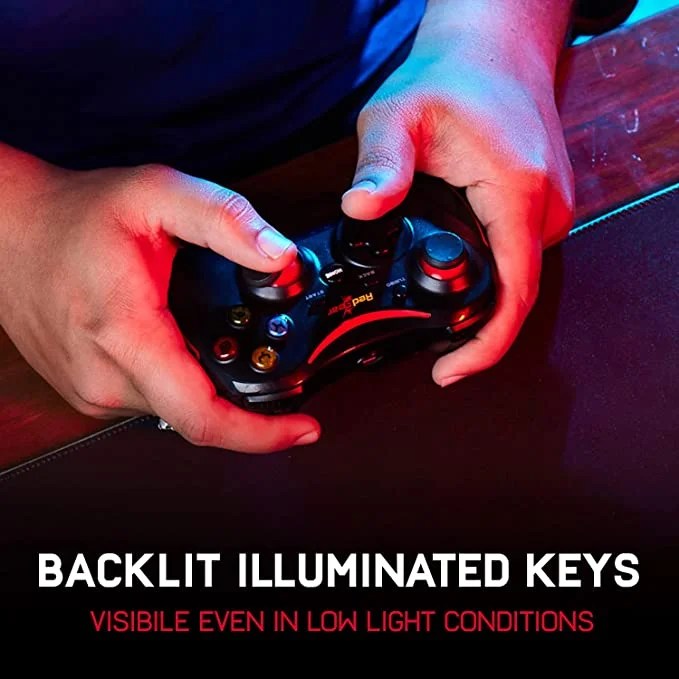 The gamepad comes with illuminated keys on the back which light up and allow visibility even in low light conditions.