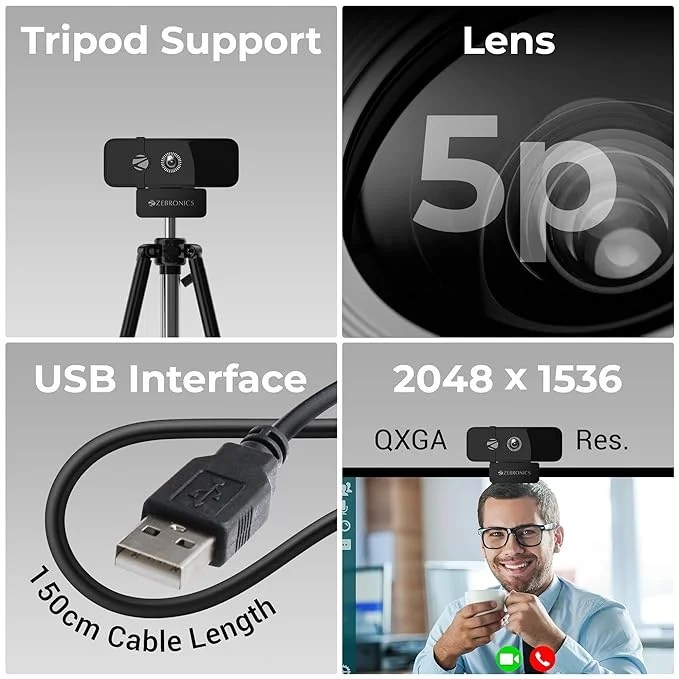Back your crystal clear video calls or your official meetings with the high-resolution ZEB-Sharp Pro QXGA webcam for a high-quality video.